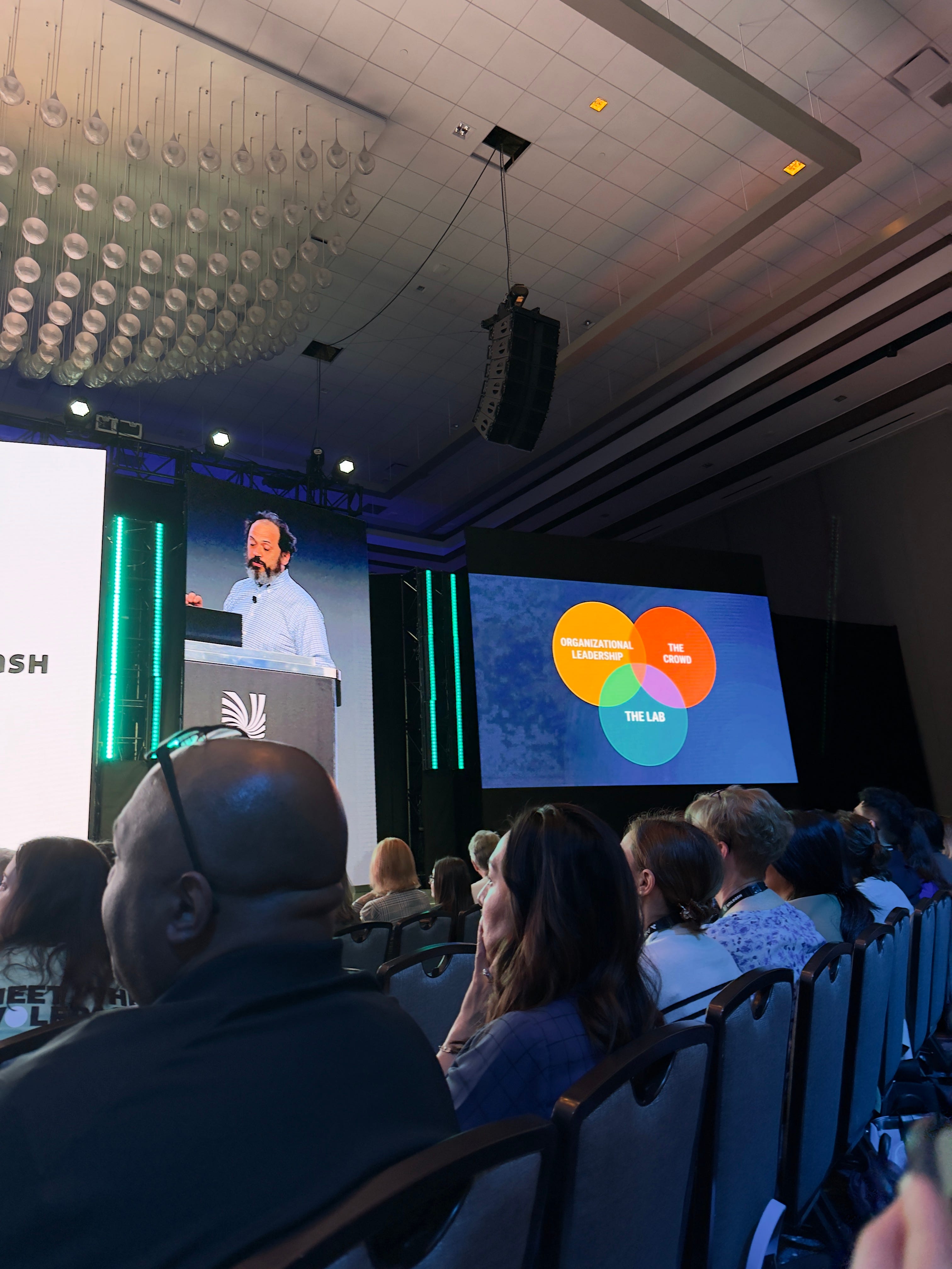 And he did not just talk about where AI is heading. He gave the room a practical framework for what to do about it, and his model has three components. Leadership, Lab, and Crowd.
